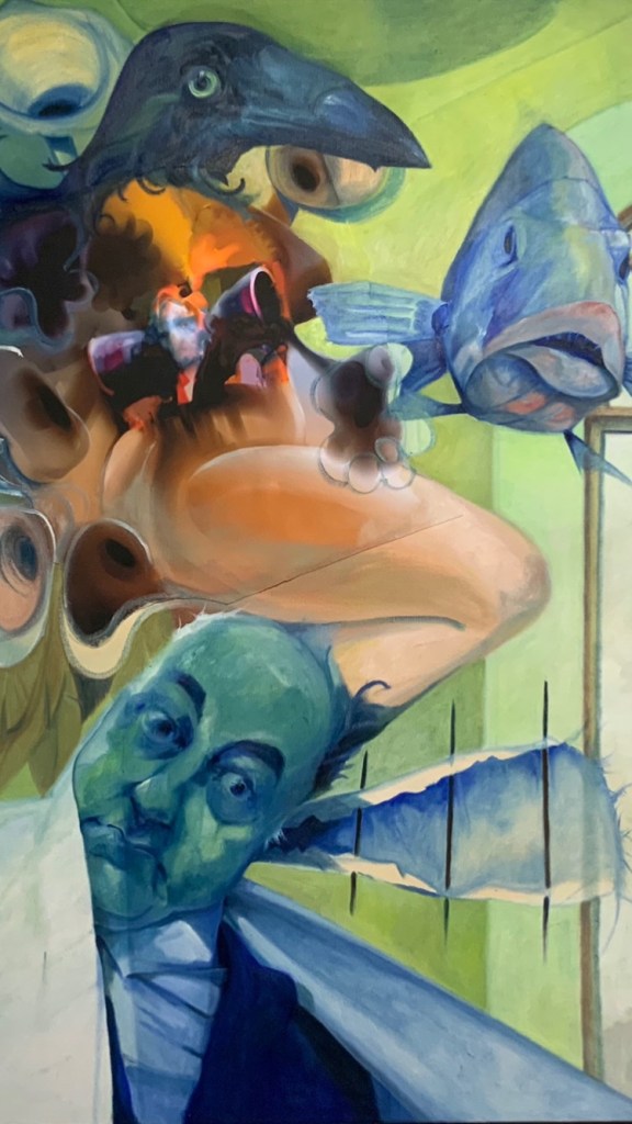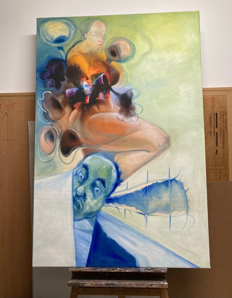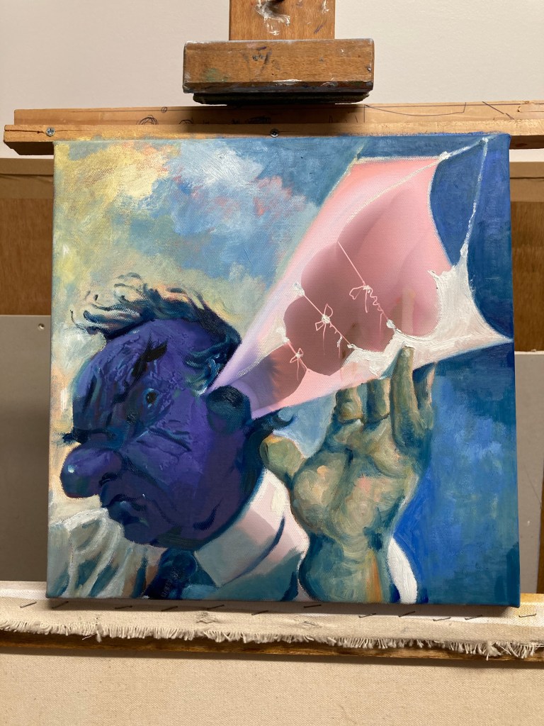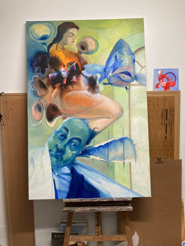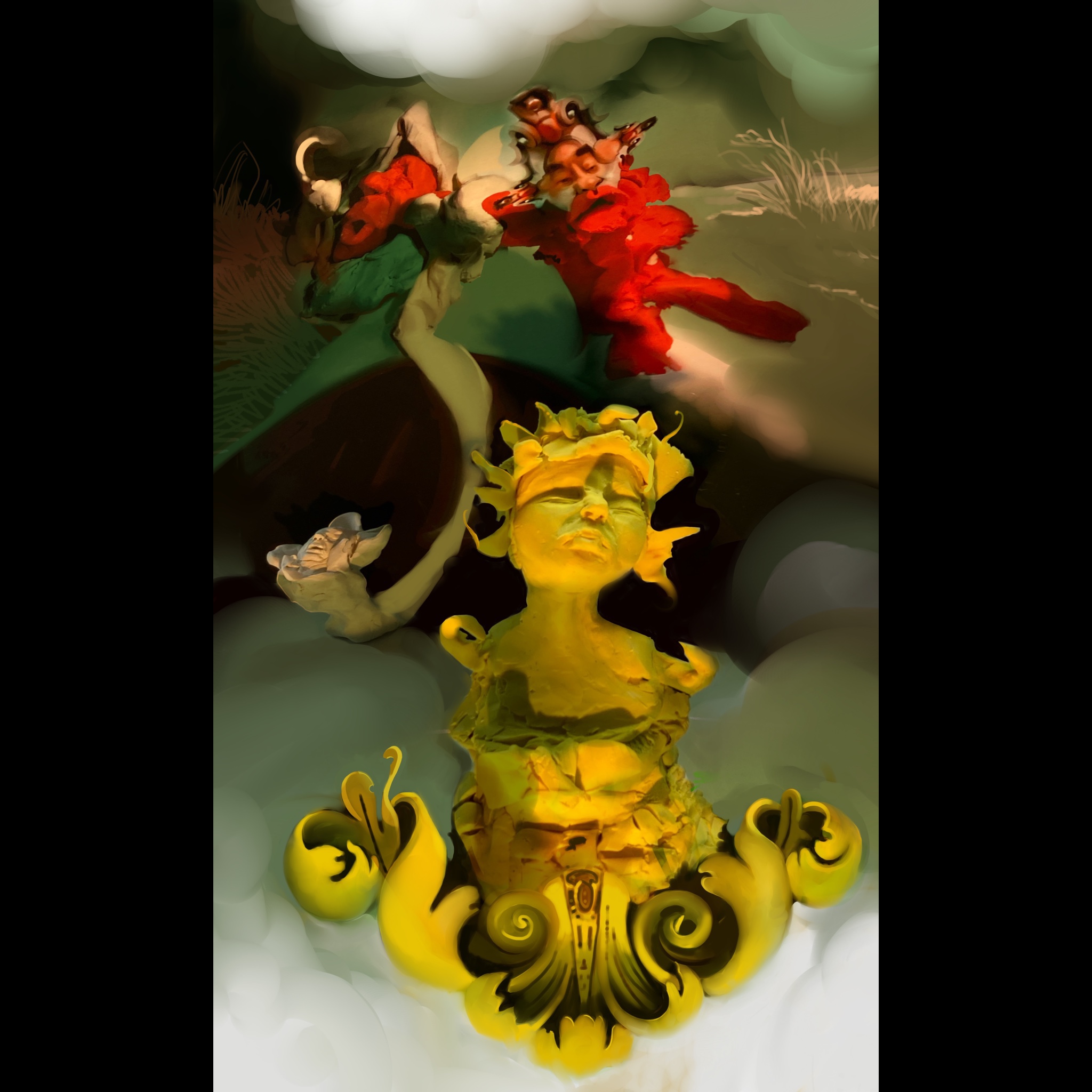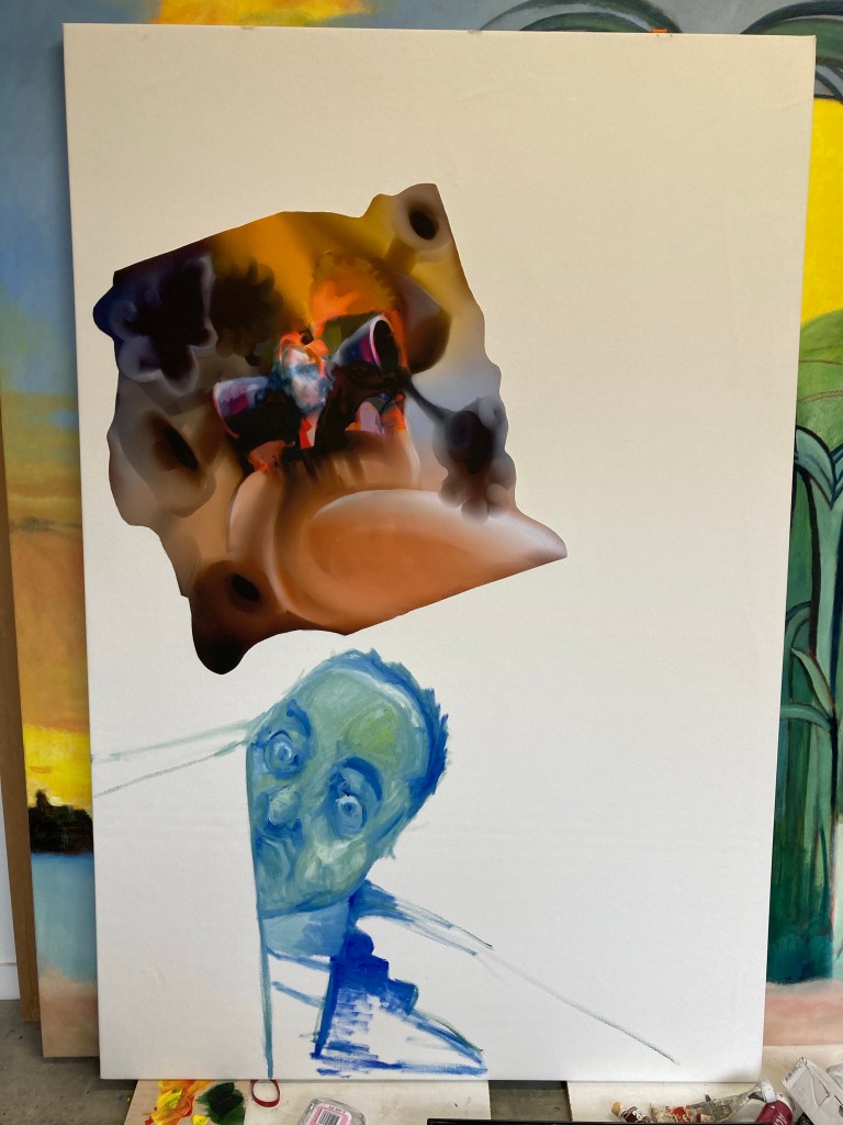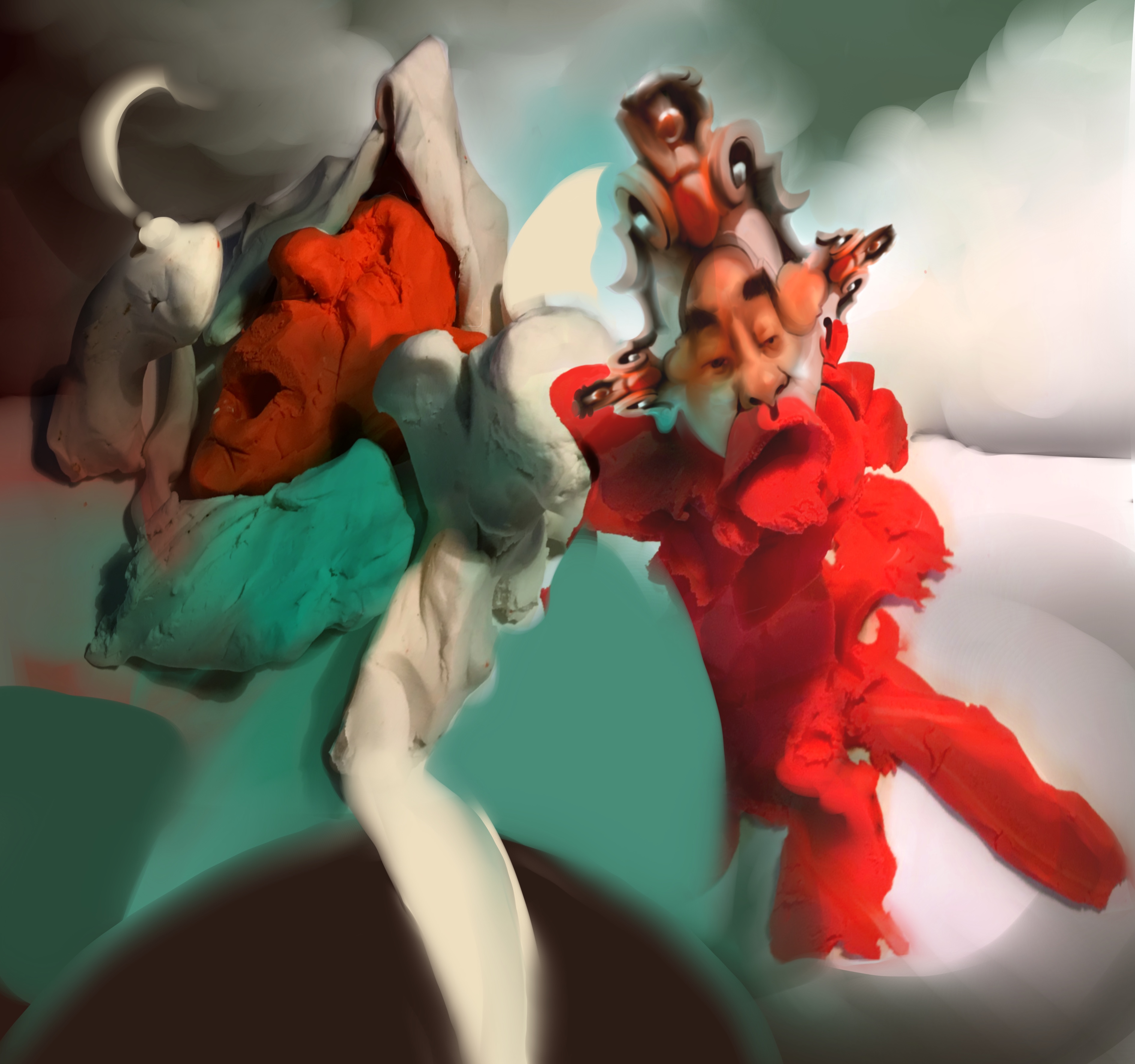 These paintings are evolving with a multimedia painting methodology, combining digital Painting/drawing, sculpture,photography, and oil painting. Finding common ground is the objective, in this shifting paradigm, where the aesthetic may become a little less flamboyant and require a more minimalist feminine touch where commonality will prevail and listening may begin .